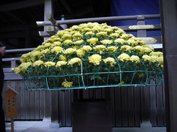 神楽殿の前に奉納の立派な菊。一本の木からこんなにも咲いていました。