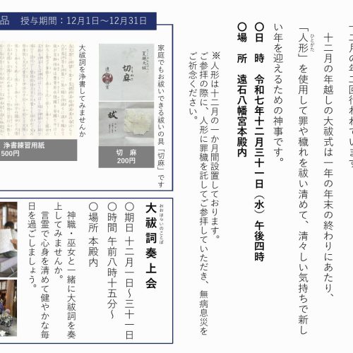 年末年始「巫女アルバイト」募集*本年の募集は終了いたしました。